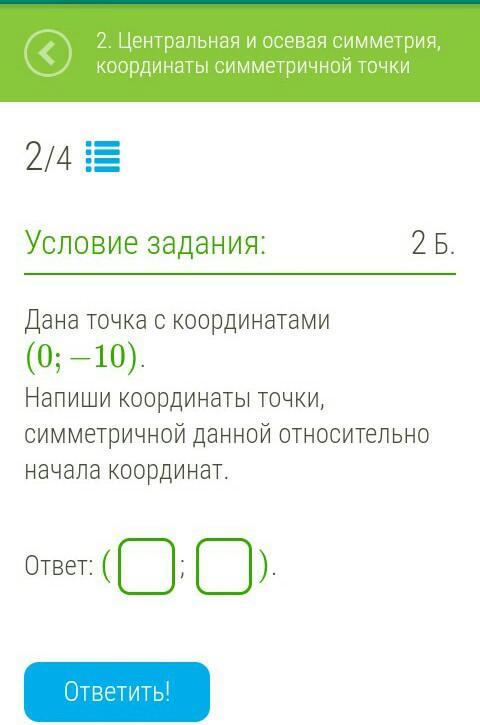Объяснение: Симметрия - это как отражение в зеркале,получилось что точка перешла на такие координаты,только с противоположным знаком.