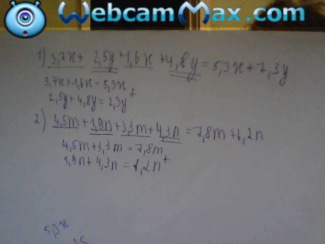 1) 3,7x+2,5y+1,6x+4,8y=5.3x+7.3y