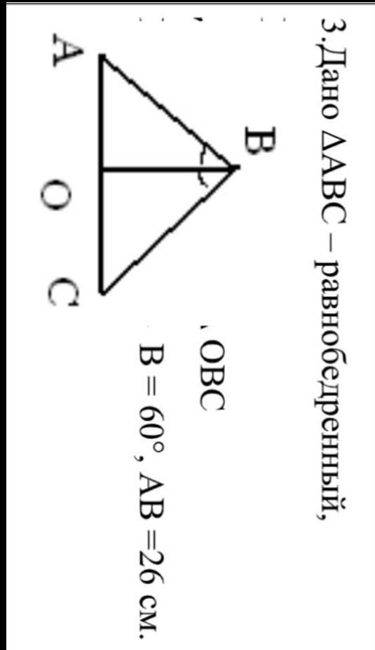 Дано треугольник ABC - равнобедренный OBC, B=60° AB=26см.