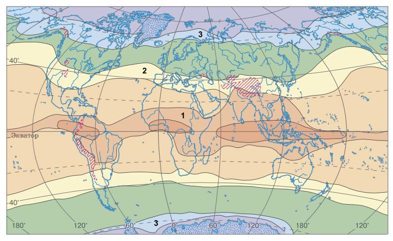 1 субэкваториальный 2 субтропический 3 субарктический и субантарктический