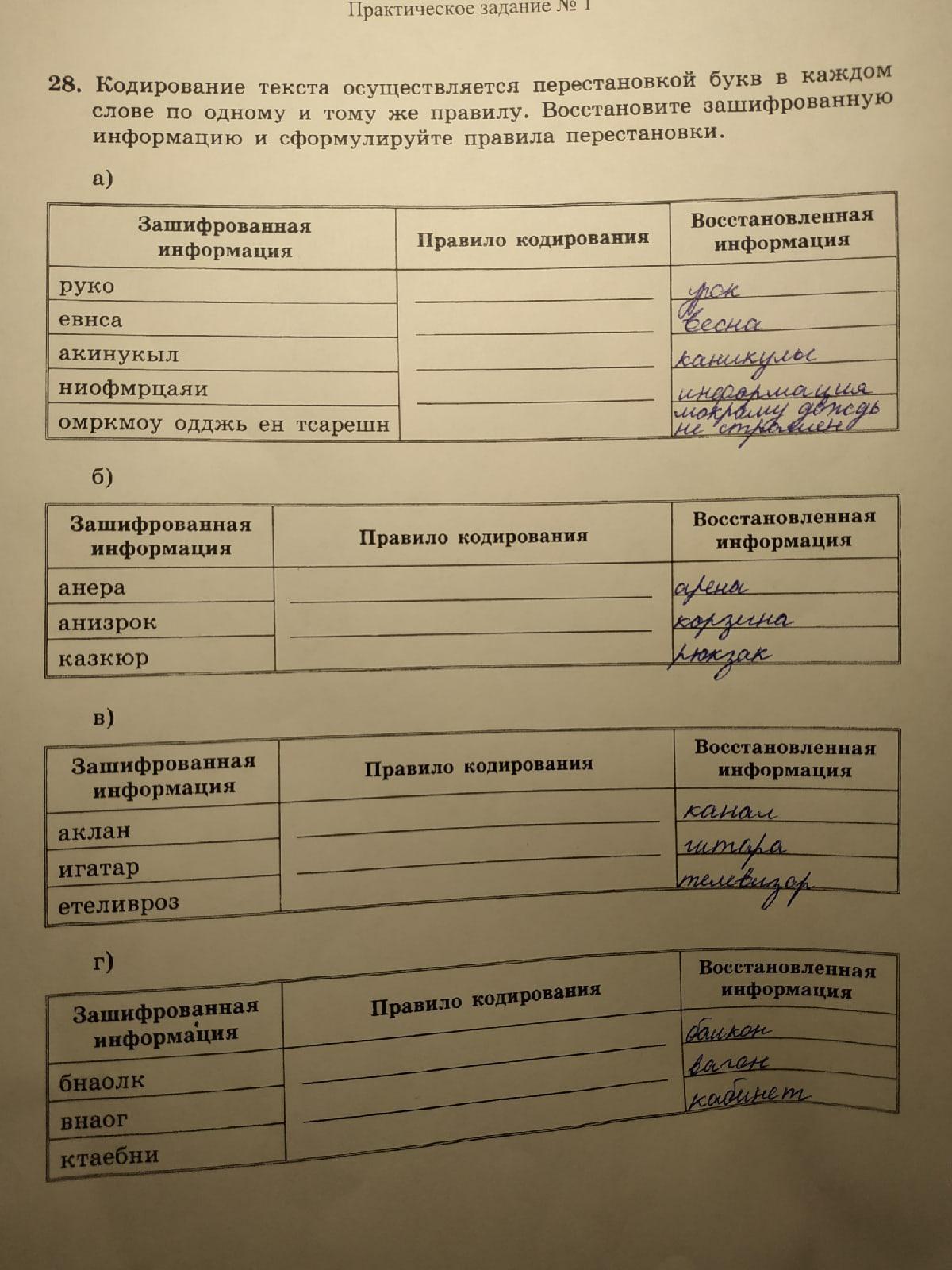 Помогите пожалуйста с информатикой! Нужно заполнить центральный столбик,правила кодирования. Даю 20 баллов.