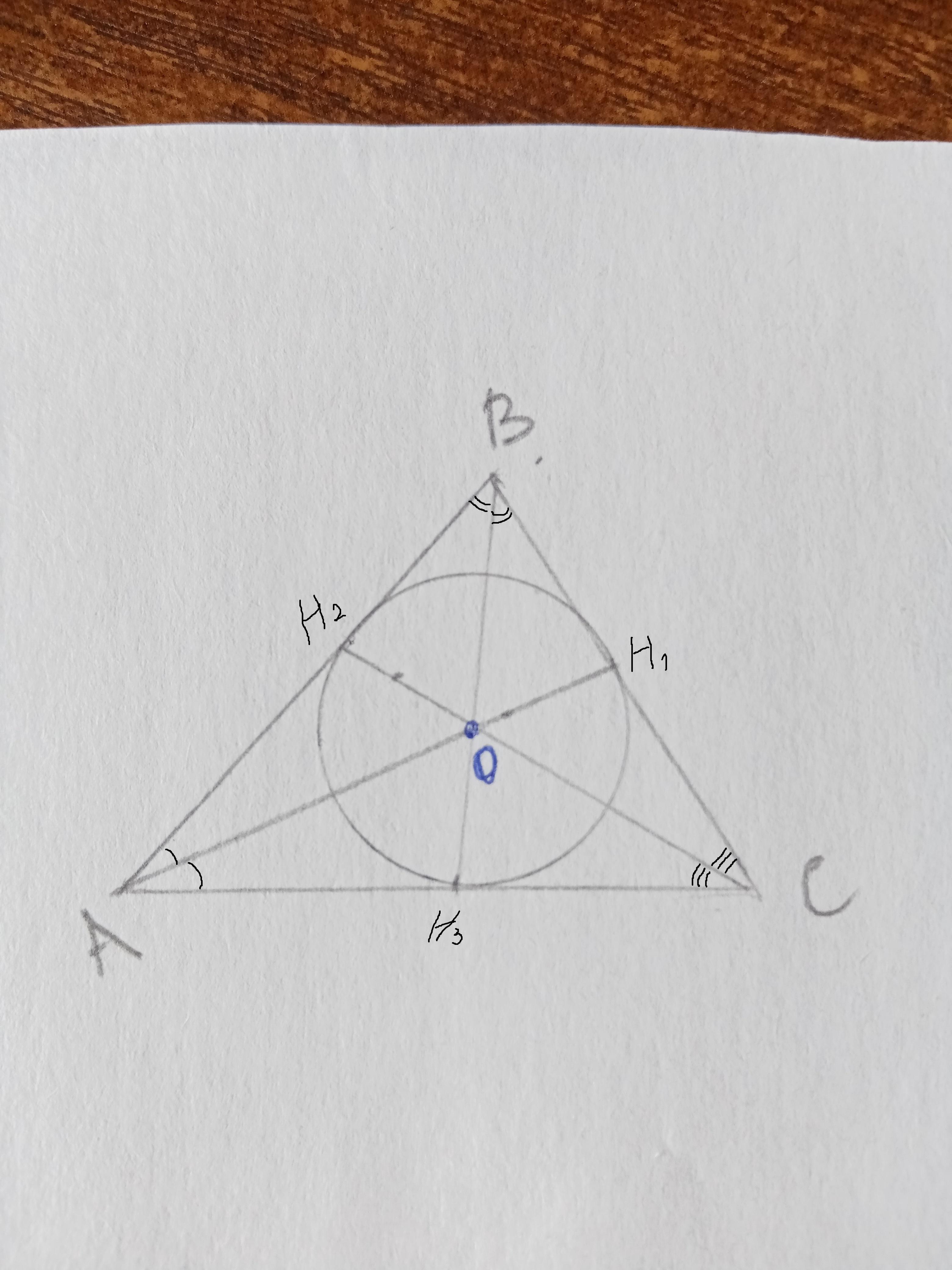 Постройте произвольный остроугольный разносторонний треугольник АВС, пользуясь транспортиром проведите биссектрисы его углов (они у вас пересекутся в одной точке, пусть это точка О- центр окружности , вписанной в треугольник). Возьмите циркуль, сделайте его раствор, равным расстоянию от точки О до стороны треугольника(это и есть радиус вписанной окружности). Проведите окружность данного радиуса. Она будет касаться всех сторон треугольника АВС. Мы построили окружность, вписанную в треугольник АВС.