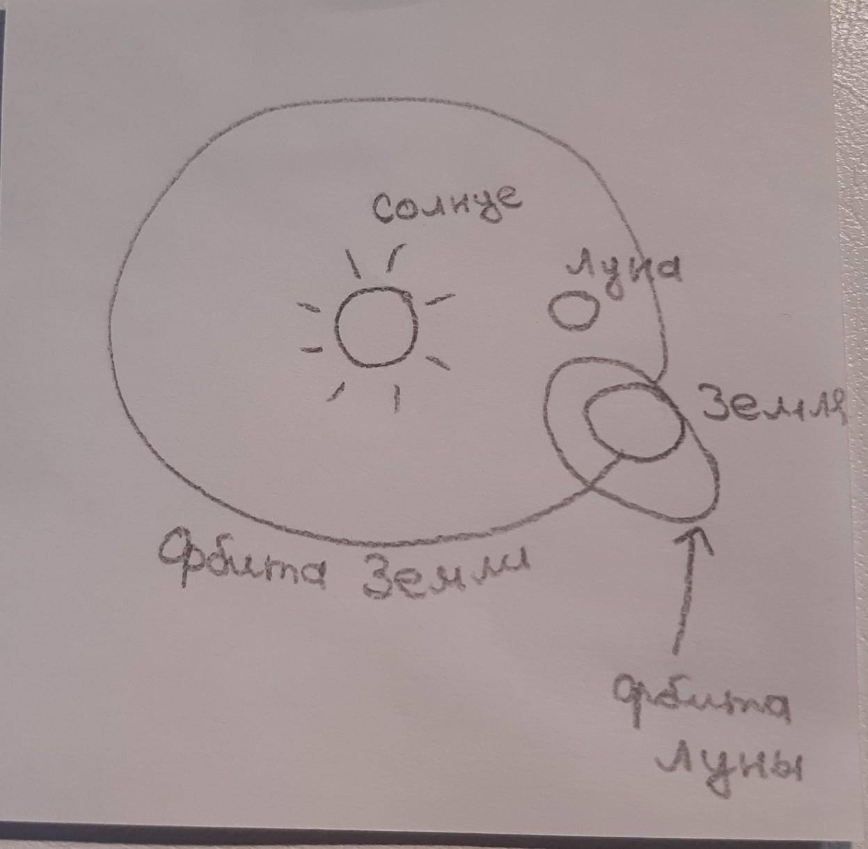 сделай подписи к схеме. Используй слова подсказки: солнце, луна, земля, орбита Земли вокруг солнца, Орбита Луны вокруг земли.