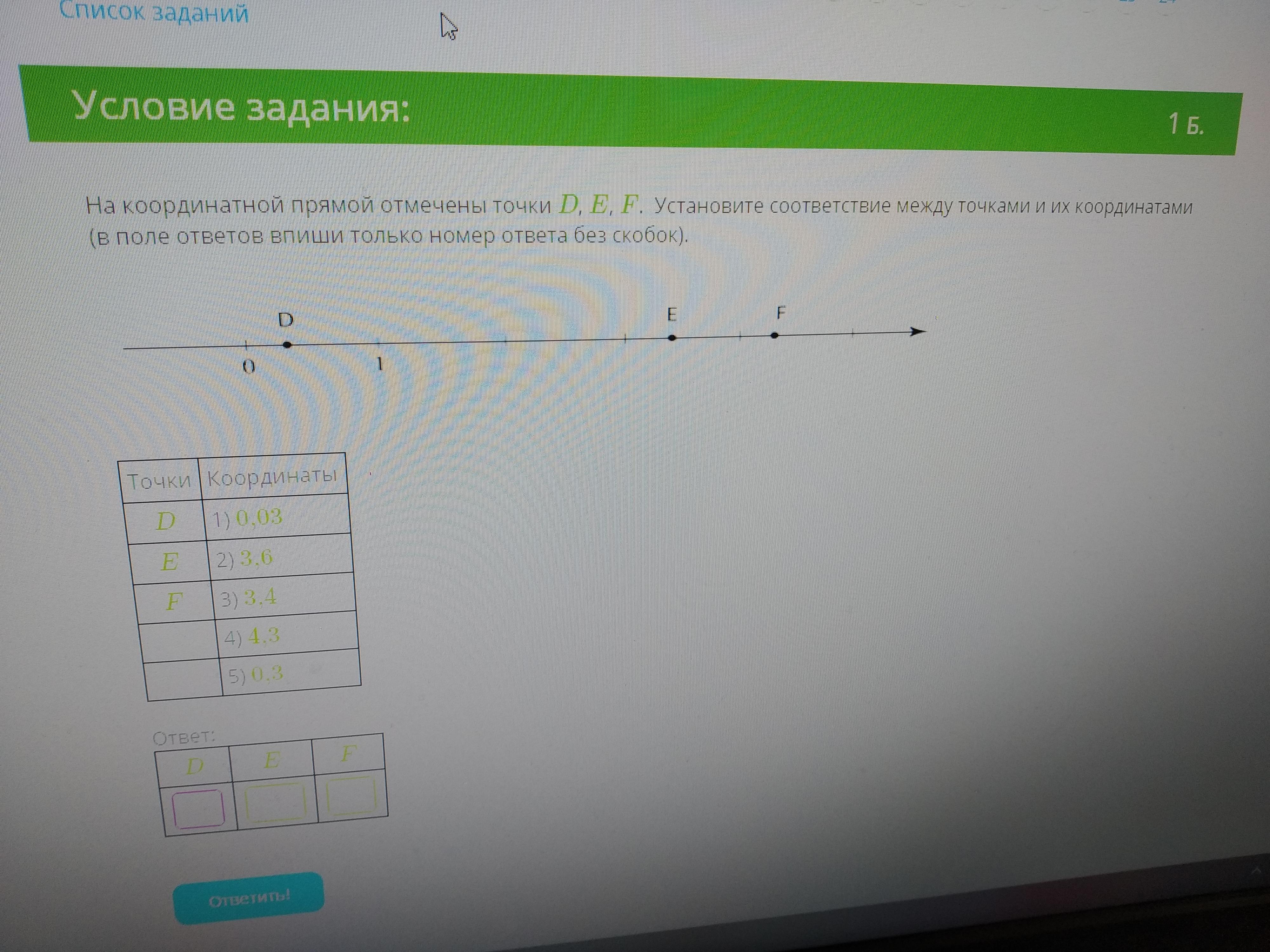 1)-30 2) D -5 F - 4 E - 3 3) 4целых дветретьих 4) 23 5) Флеш-карта = 989,1 мышь = 367,38