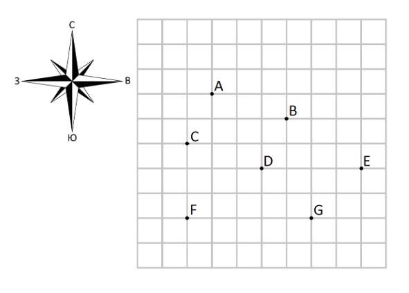 В какую точку попадёт мистер Фокс, если пройдёт 2 клетки на запад, 1 клетку на север и ещё 1 клетку на запад?