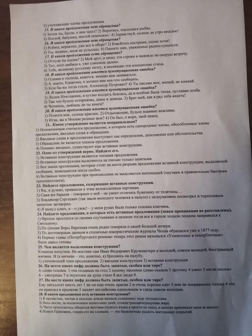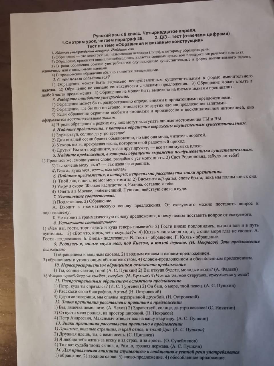 Тест по русскому языку 8 класс