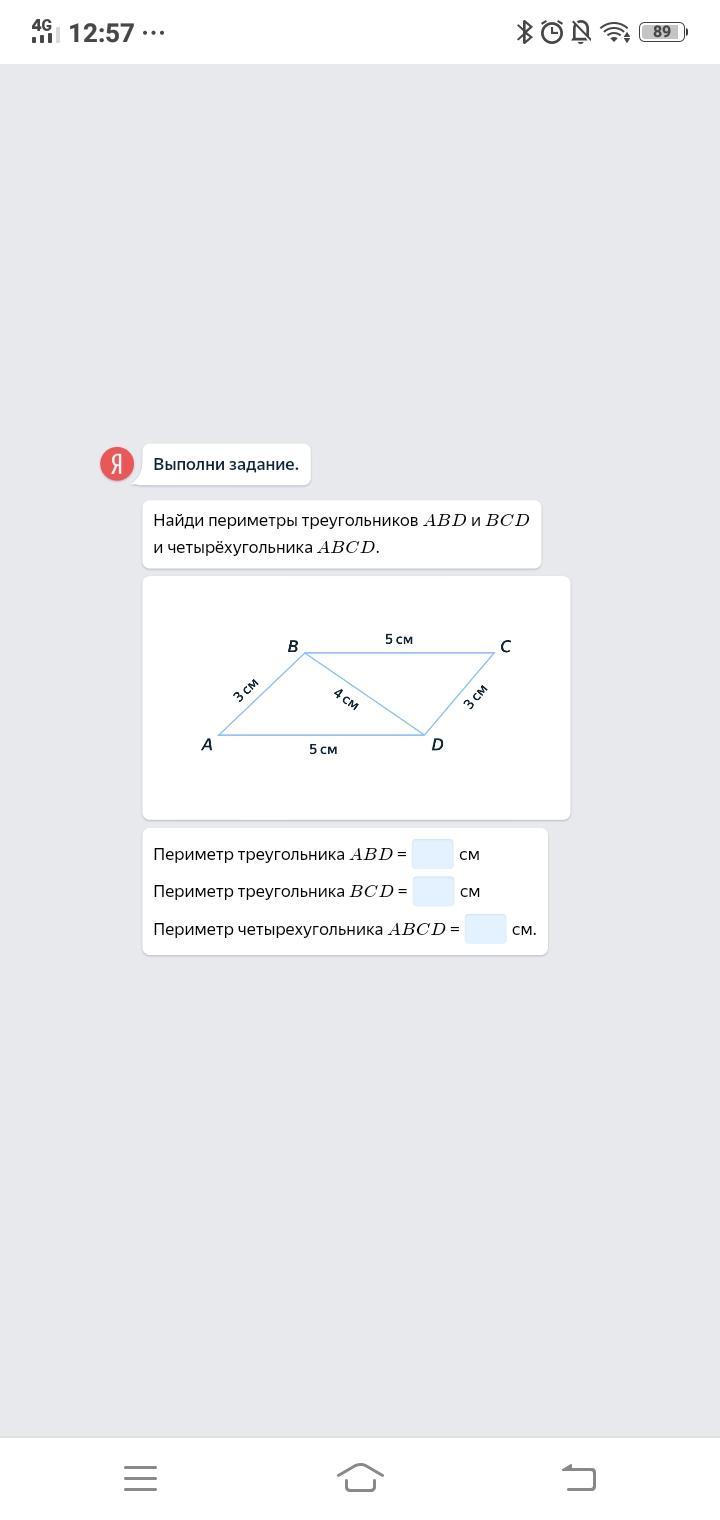 Периметр BCD = 5 + 4 + 3 = 12 СМ