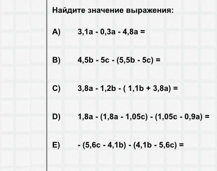 в) 4,5b-5с-(5,5b-5с)=4,5b-5с-5,5b-5с=-b-10с
