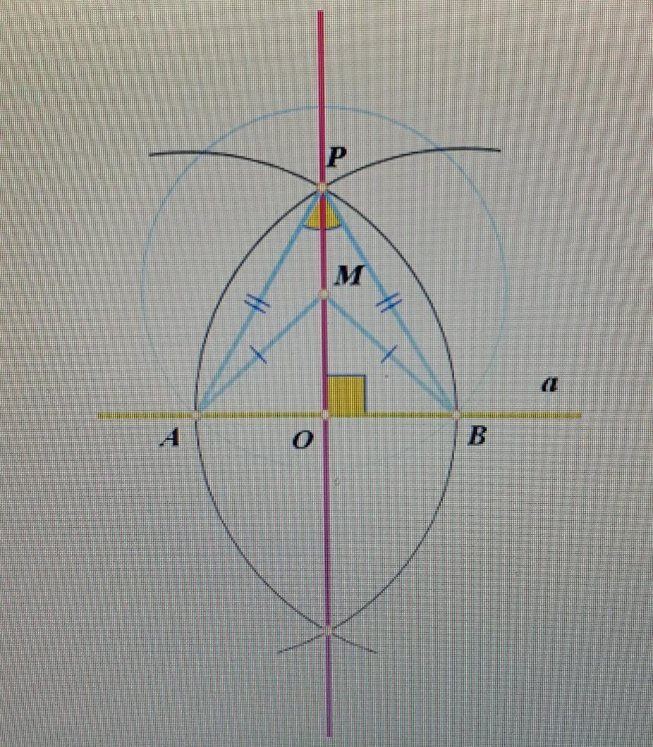 В самом деле, треугольники .... и ВРМ равны по ....(....=ВР,....=ВМ,....-общая сторона),поэтому < .... = <ВРМ, поэтому отрезок .... в равнобедренном треугольнике АВР является .... ,проведённой к основанию,а значит и .... ,т.е прямая РМ перпендикулярна прямлй а.