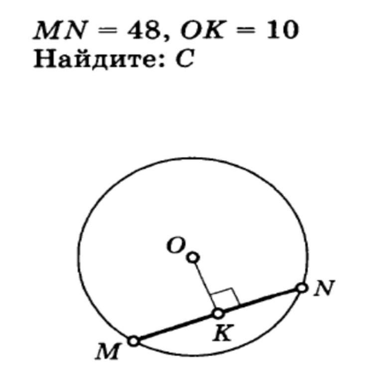 ОК - отрезок радиуса, который перпендикулярен хорде MN, а значит, он проходит через её середину. Тогда КN = 24. Проведём радиус ОN.