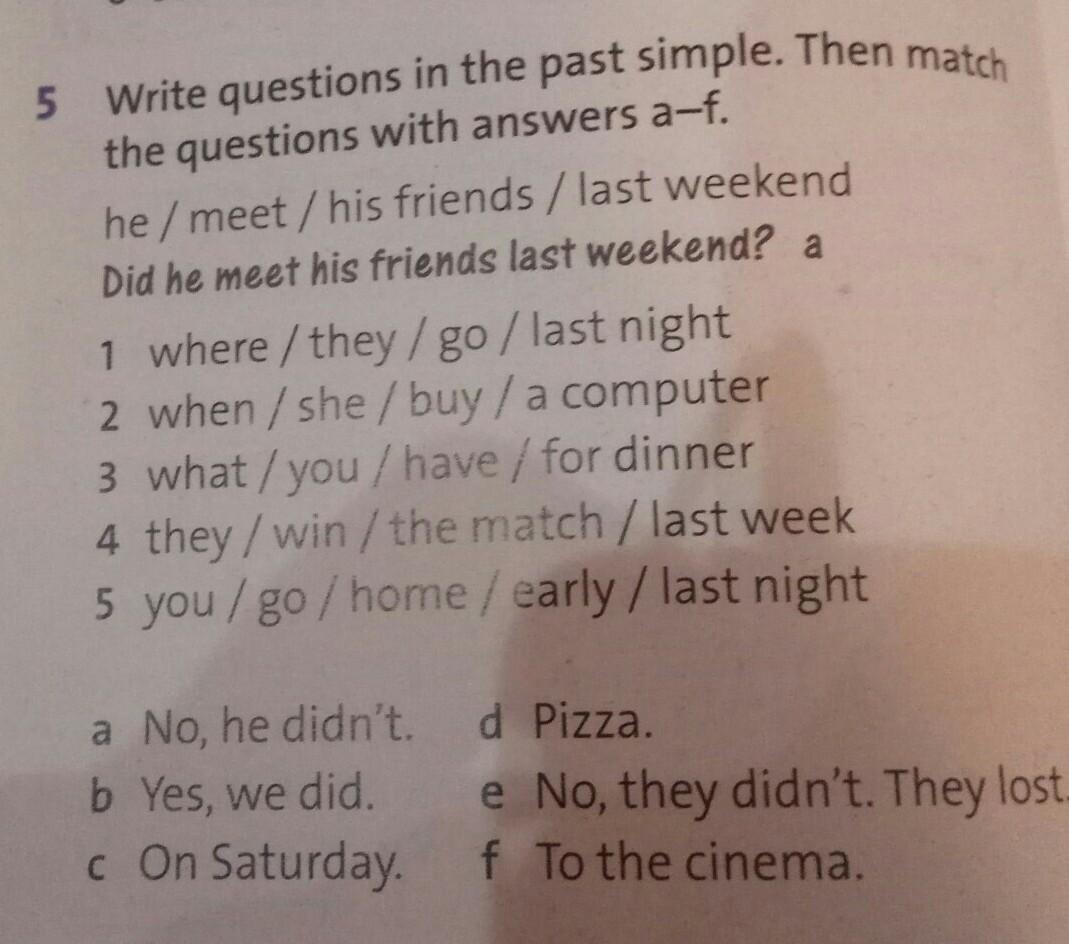 4. Did they win the match last week? - e