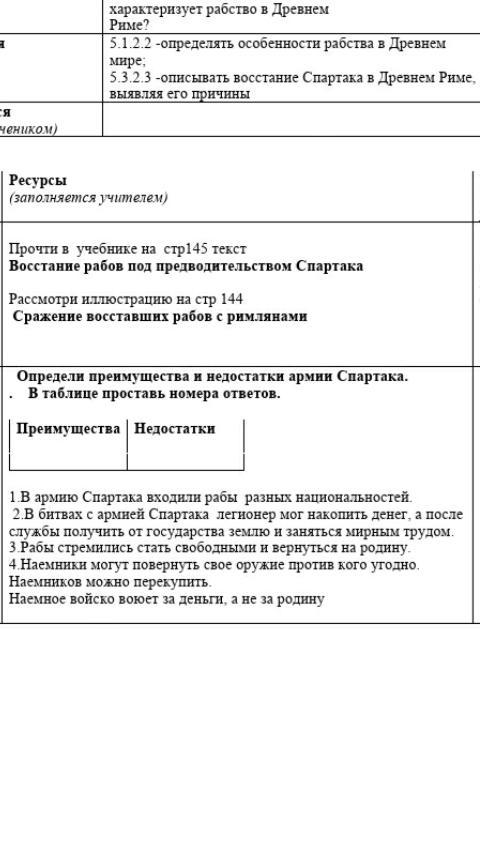 Помогите сделать таблицу преимущества и недостатки армии Спартака даю 20 балов!