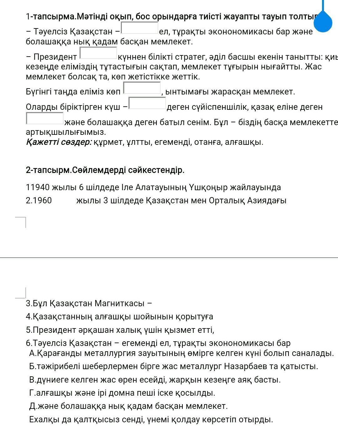 1940 жылы 6 шілдеде Іле Алатауының Үшқоңыр жайлауында дүниеге келген жас өрен есейді, жарқын кезеңге аяқ басты. Н. Назарбаевтың жастық шағы ізденіске толы болды. Теміртауға оралғаннан кейін өмірінің «жалынды» кезеңі басталды. 1960 жылы 3 шілдеде Қазақстан мен Орталық Азиядағы алғашқы және ірі домна пеші іске қосылды. Бұл Қазақстан Магниткасы – Қарағанды металлургия зауытының өмірге келген күні болып саналады. Қазақстанның алғашқы шойынын қорытуға тәжірибелі шеберлермен бірге жас металлург Нұрсұлтан та қатысты. Осыдан бастап еңбек жолы елге қызмет етумен жалғасуда. Тұңғыш Президент Н.Ә. Назарбаев – біздің мақтанышымыз. Президент әрқашан халық үшін қызмет етті, халқы да қалтқысыз сенді, үнемі қолдау көрсетіп отырды. Тәуелсіз Қазақстан – егеменді ел, тұрақты эконономикасы бар және болашаққа нық қадам басқан мемлекет. Президент алғашқы күннен білікті стратег басшы екенін таныта білді: қиын кезеңнің өзінде еліміздің тұтастығын сақтап, мемлекет тұғырын нығайтты. Жас мемлекет болсақ та, көп жетістікке жеттік. Бүгінгі таңда еліміз көп ұлтты, ынтымағы жарасқан мемлекет. Оларды біріктірген күш – Отанға деген сүйіспеншілік, қазақ еліне деген құрмет және болашаққа деген батыл сенім. Бұл – біздің басқа мемлекеттерден артықшылығымыз. Жыл сайын Президент Қазақстан халқына жолдау арнап, еліміздің болашағына қатысты жоспарларымен бөліседі.