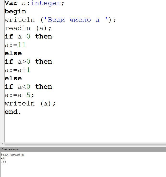Дано целое число. Если оно является положительным, то прибавить к нему 1 ; если отрицательным, то вычесть из него 5; если нулевым, то заменить его на 11. Вывести полученное число.