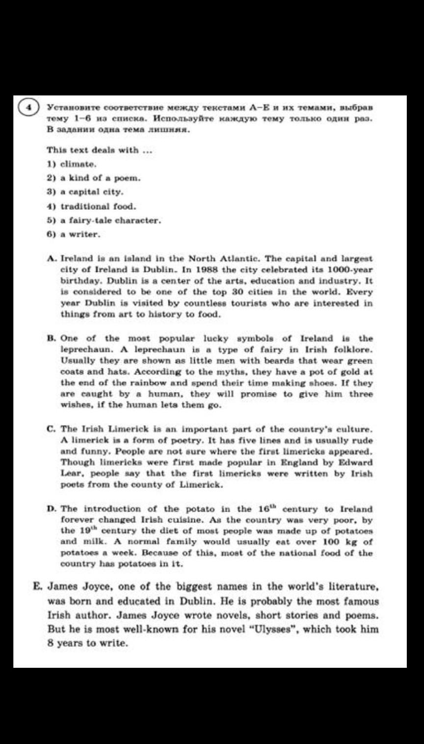 установите соответствие между текстами и их темами выбрав тему 1-6 из списка. Используйте каждую тему только один раз. В задании одна тема лишняя