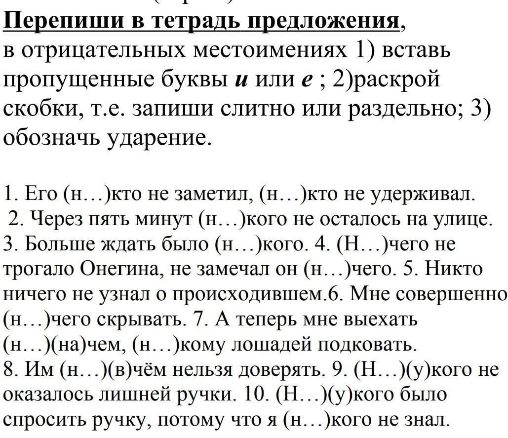 10. Не́ у кого было спросить ручку, потому что я ни́кого не знал.