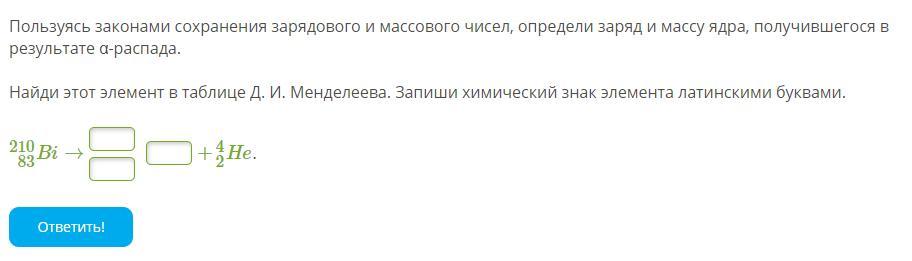 Найди этот элемент в таблице Д. И. Менделеева. Запиши химический знак элемента латинскими буквами.