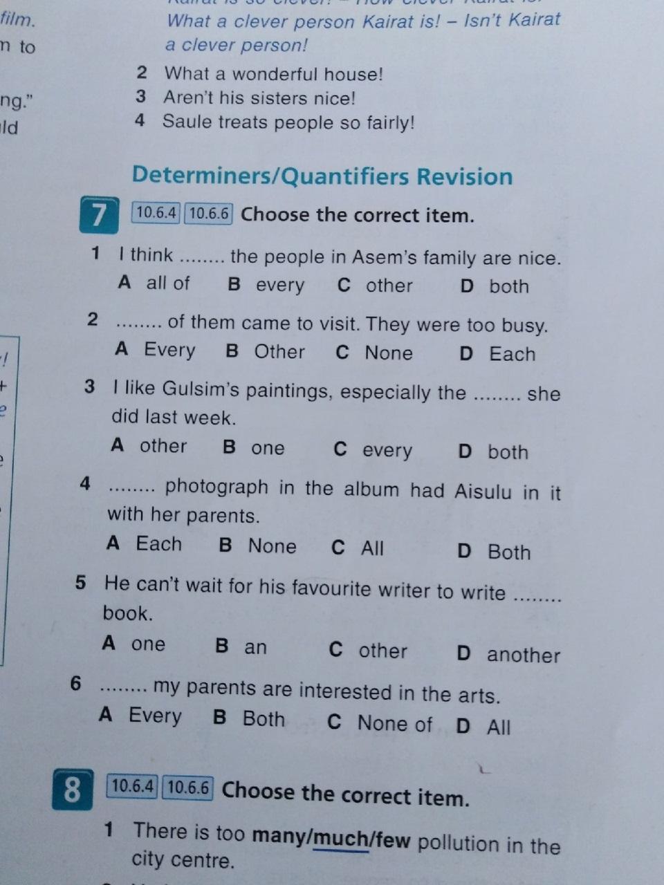 1. all of, 2. none, 3. one, 4. each, 5. another, 6. none of