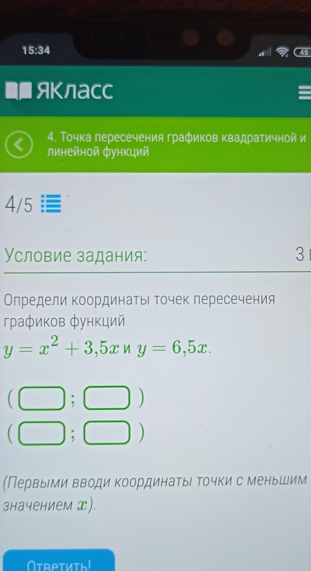 Чтобы найти координаты точек пересечения приравняем два уравнения: