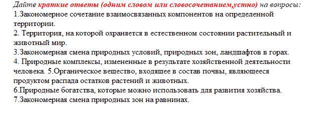 6.Природные богатства, которые можно использовать для развития хозяйства. 7.Закономерная смена природных зон на равнинах.