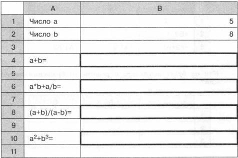а) запишите результат копирования формулы из ячейки выделенного диапазона.