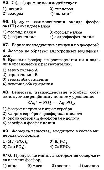 химия, 9 класс проверочная работа по теме фосфор и его соединения