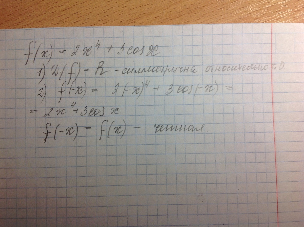 2. Докажите. что функция f(x)=2x^4+3cos x является четной.