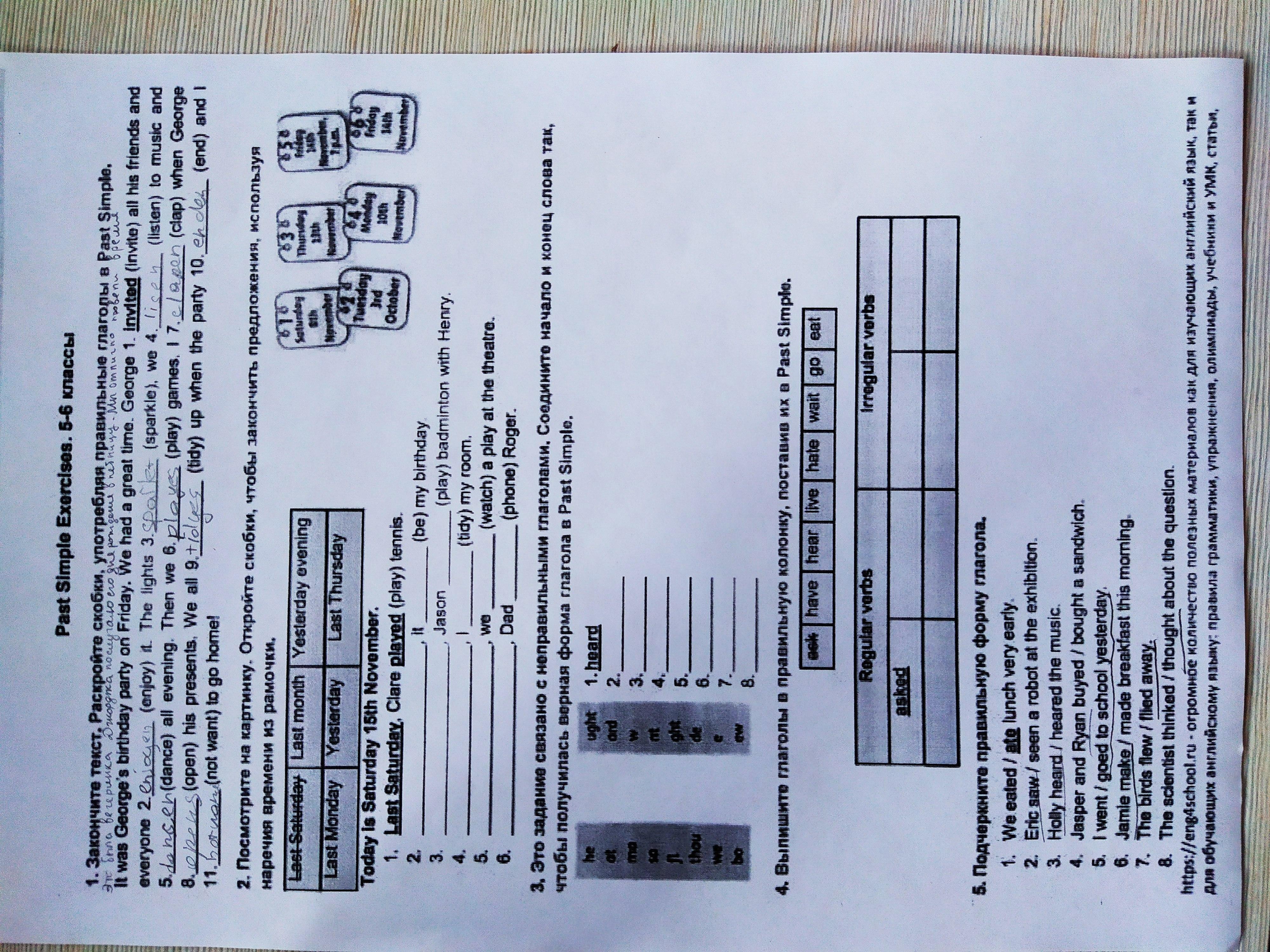 5.1. ate 2. saw 3. heard 4. bought 5. went 6. made 7. flew 8. thought