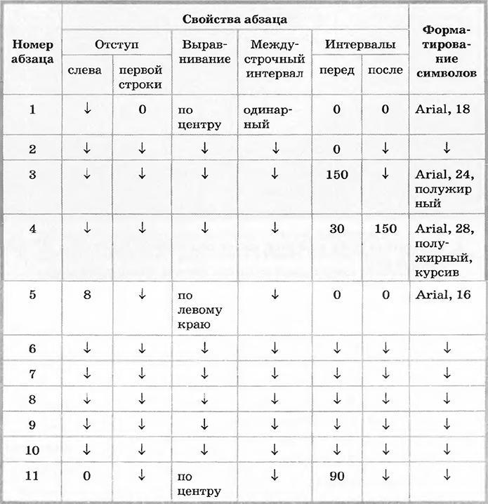 3. Выполните форматирование абзацев в соответствии со следующими требованиями: