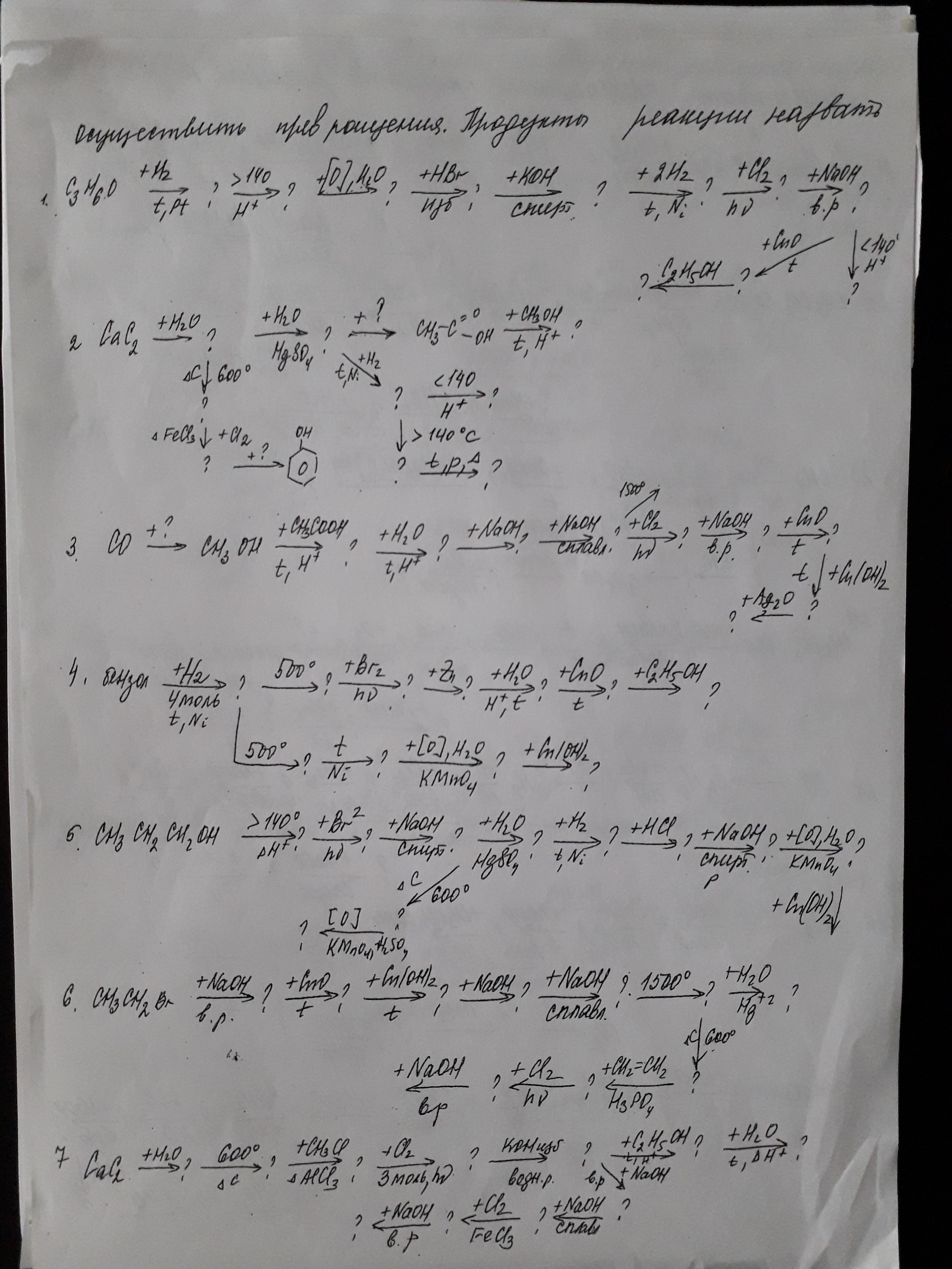осуществить превращение продуктов, реакции назвать