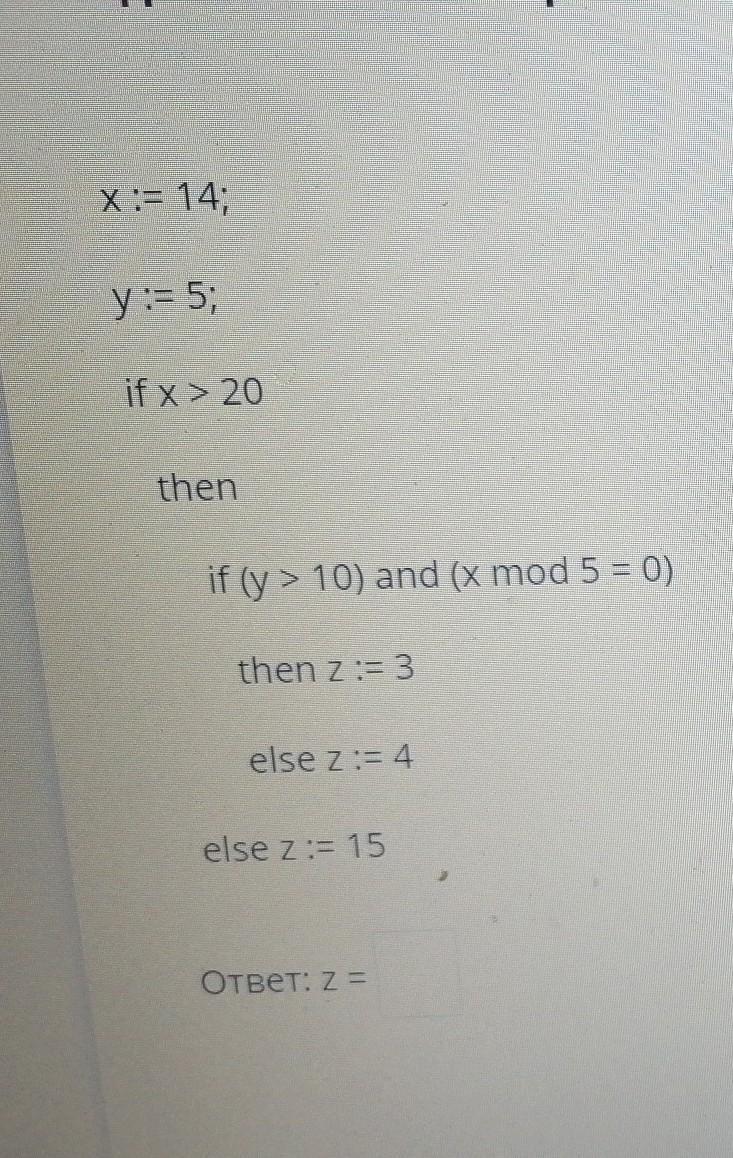 Найдите значение переменной Z после выполнения данных фрагментов программы) ​
