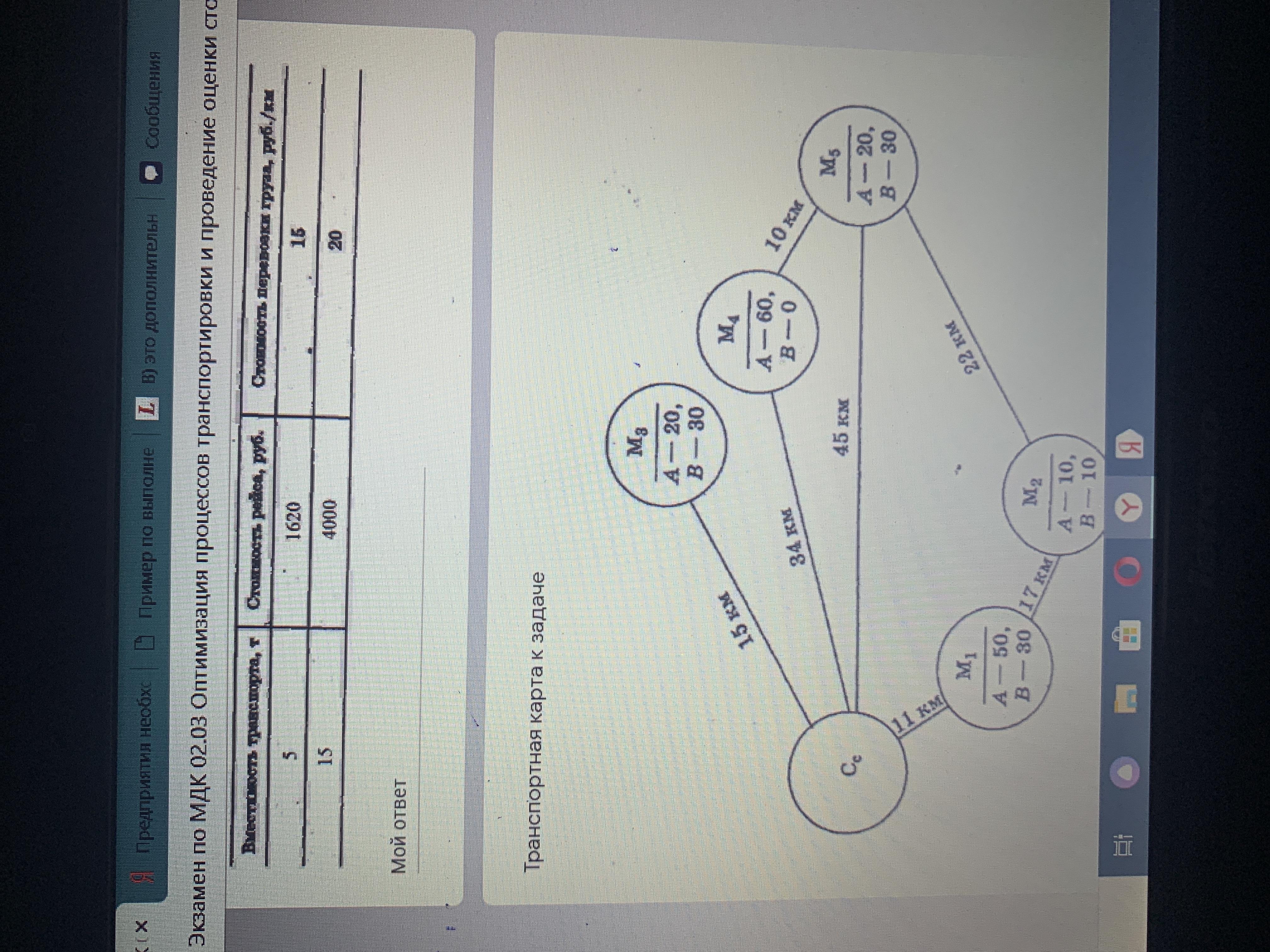 Предприятия необходимо осуществить доставку с собственного склада (Сс) товаров А и В в розничную сеть, включающую семь магазинов (М1-М5). Расстояние в километрах до магазинов, потребность в коробках приведены на схеме. Транспортная компания может предоставить для перевозки грузов два типа грузовых машин. Основные параметры транспорта, стоимость рейса и стоимость перевозки груза указаны в таблице. Масса одной коробки товара А- 40 кг, товара В -30 кг). Рейсом считается выезд машины со склада и ее возврат на склад. Движение порожней машины при расчетах не учитывается. Определите наиболее экономичный вид транспортного средства и минимальное значение расходов по доставке.