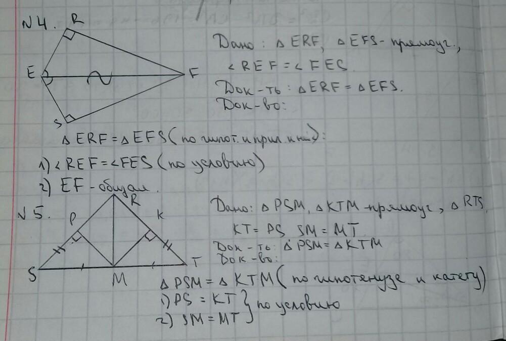 Здравствуйте, помогите решить задачи по готовым чертежам. Во всех задачах нужно найти пары равных треугольников и доказать их равенство, перечертить чертеж, записать условие и полное решение с пояснением