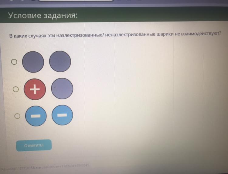 В каких случаях эти наэлектризованные ненаэлектризованные шарики не взаимодействуют?