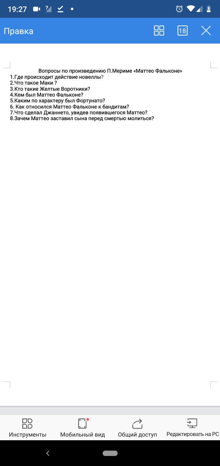 Вопросы по произведению П.Мериме «Маттео Фальконе»
