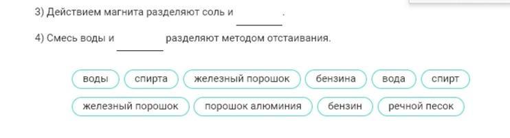 3) соль и железный порошок