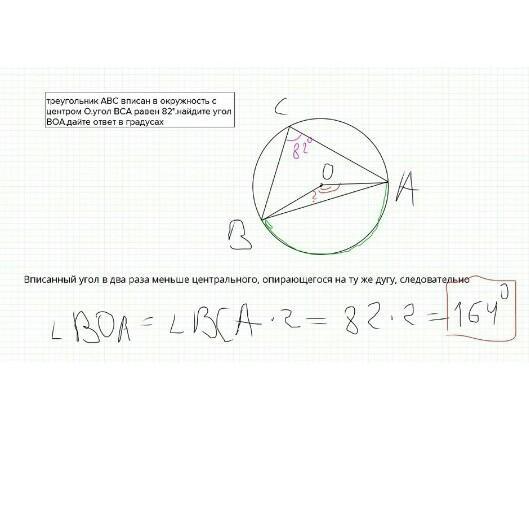 в окружность с центром в точке O вписан угол abc.U-AB-195 градусов угол ABC -10 градусов. Найти U-BC