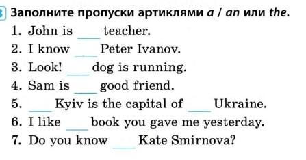 1 a 2 - 3 the 4 a 5 -/- 6the 7 -
