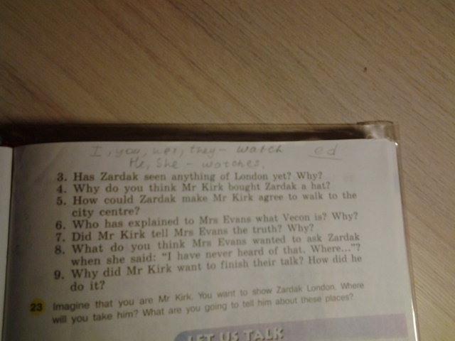 держи: 1. где мистер кирк встретил зардак 2.что вы узнали из текста о зардак?? 3.зардак видела ли что -нибудь в лондоне? почему? 4. как вы думаете, почему мистер кирк купил зардак шляпу. 5. как бы смогла зардак уговорить мистера кирка согаситься прогуляться до центра города? 6.кто объяснил м-ру эвансу, что такое векон? почему? 7. сказал ли правду м-р кирк м-ру эвансу? почему?8. как вы думаете, что мистер эванс хотел спросить зардака,когда она(зардак )сказала:я никогда такого не слышала, где.." 9.почему м-р кирк хотел закончить их разговор и как он это сделал?