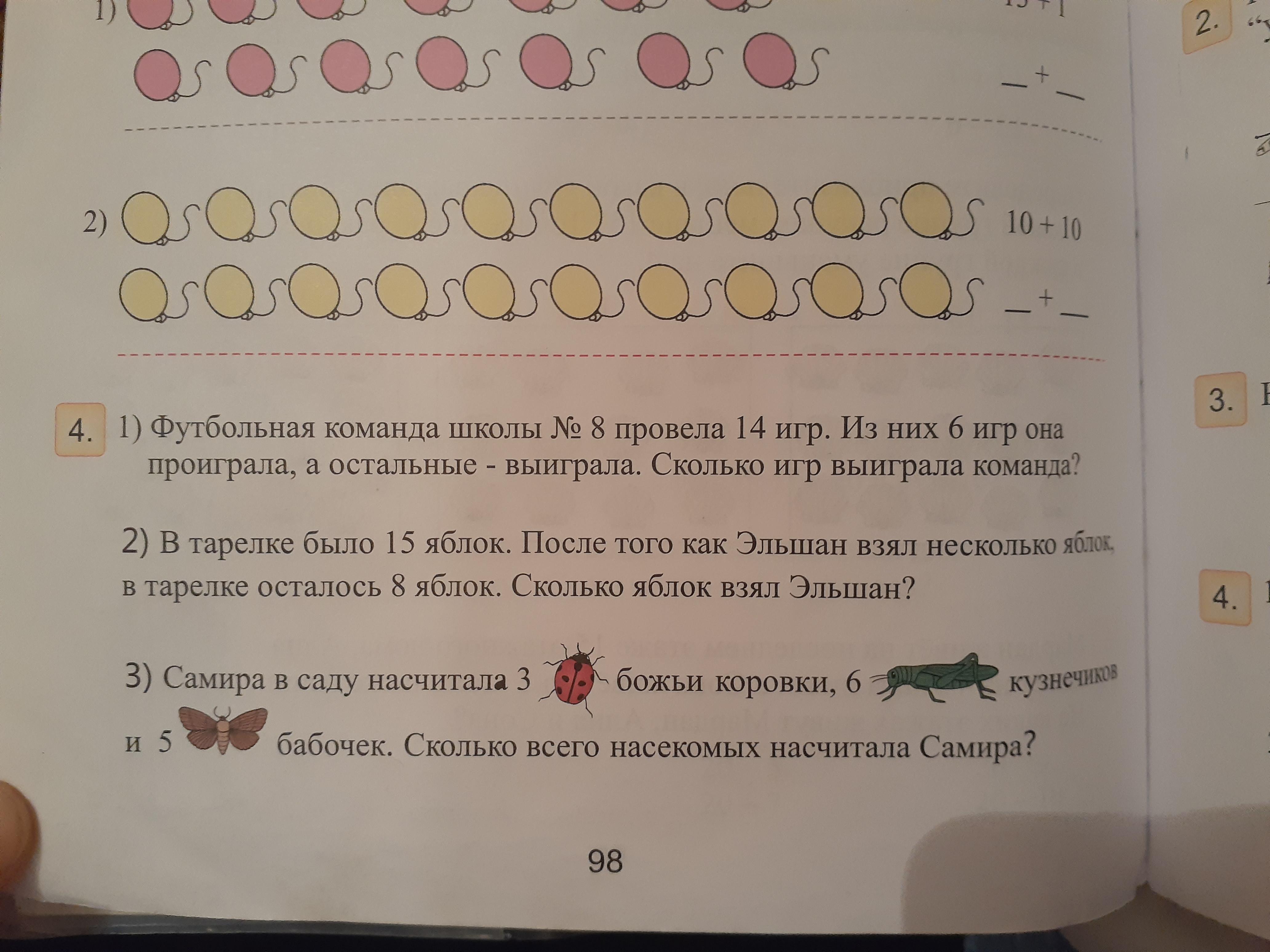 3 задание: 3+6+5=14 (насекомых)- насчитала Самира