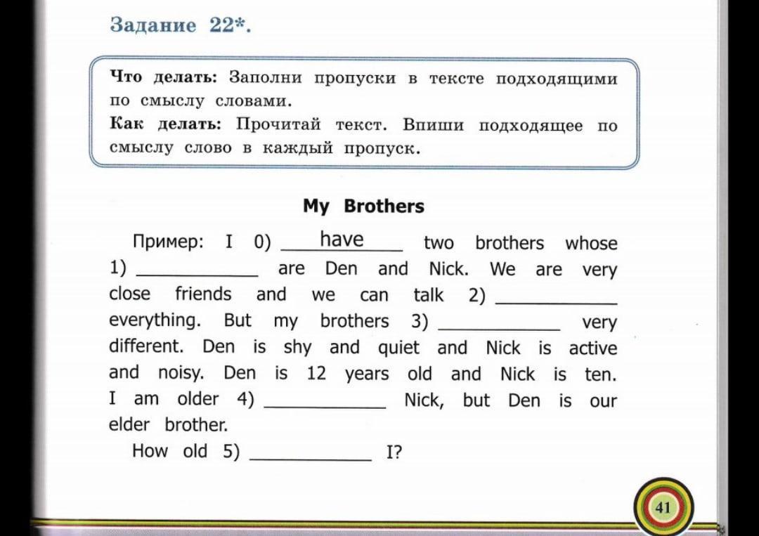 1.Умения есть 2 брата, чьи ИМЕНА Ден и Ник.