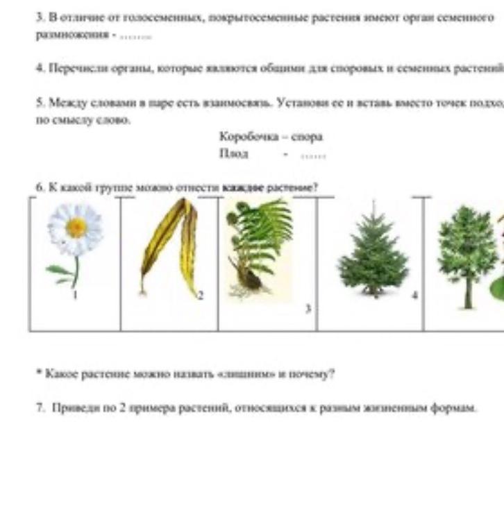 7 - голосемяные: кедр, сосна.