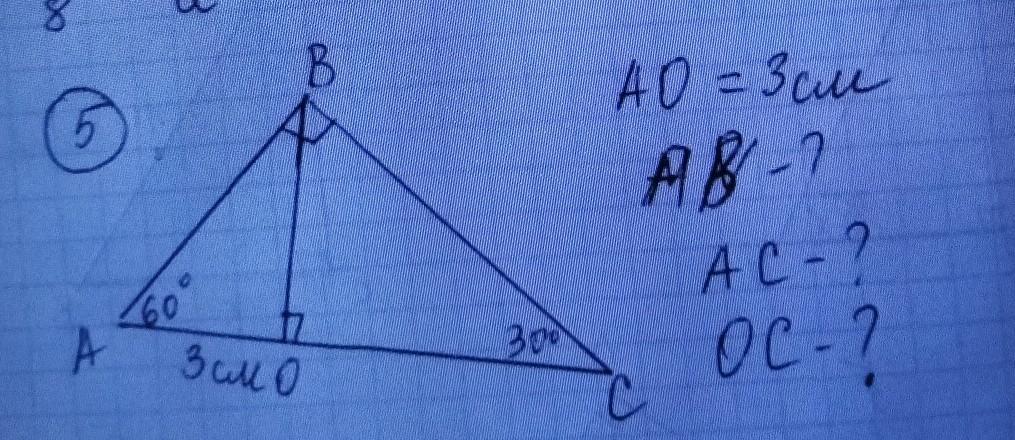 1) Сумма острых углов прямоугольного треугольника равна 90° ⇒ ∠ABO = 90 - 60 = 30°; катет, лежащий напротив угла в 30° равен половине гипотенузы ⇒ AB = 2 * AO = 2 * 3 = 6 см