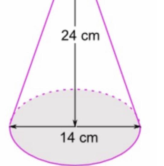 На схеме показан конус высотой 24 см и диаметром основания 14 см. Каков его объем? Используйте