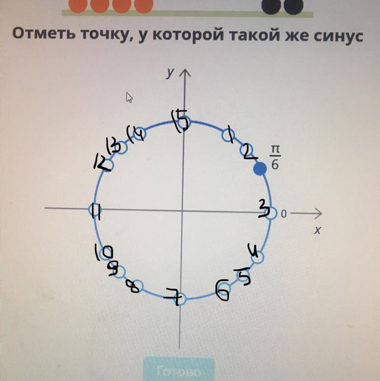 10б, хелп,я пронумеровала точки ,скажите номер точки, у которой такой же синус