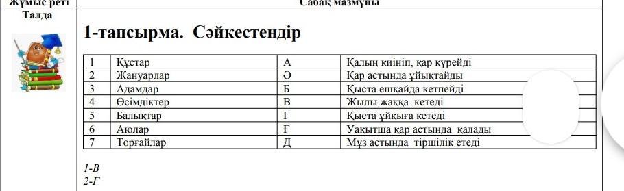 1 в 2 а 3 ә 4 ғ 5 д 6 г 7 б