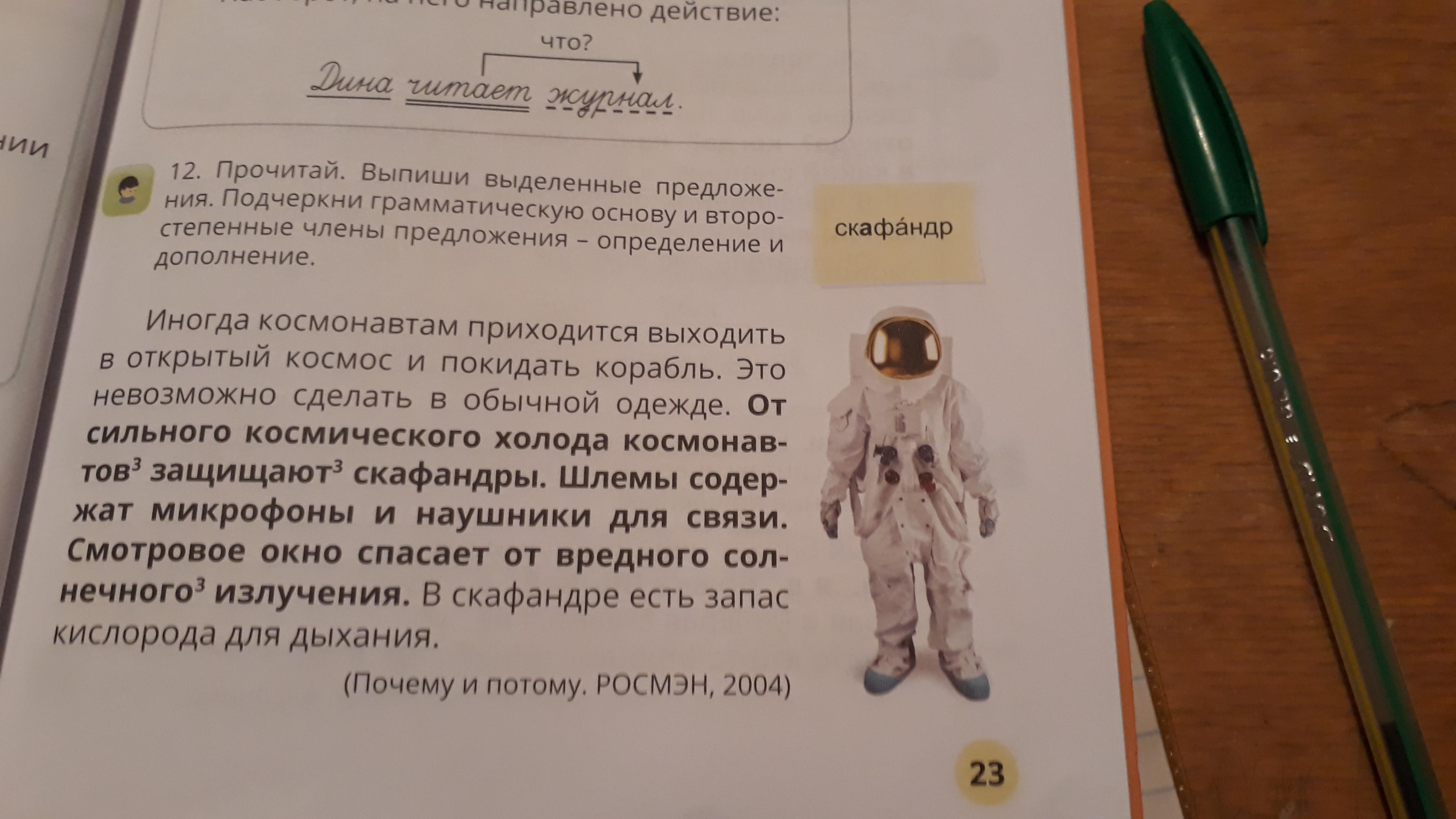 Грамматическая основа: скафандры - подлежащее; защищают - сказуемое.