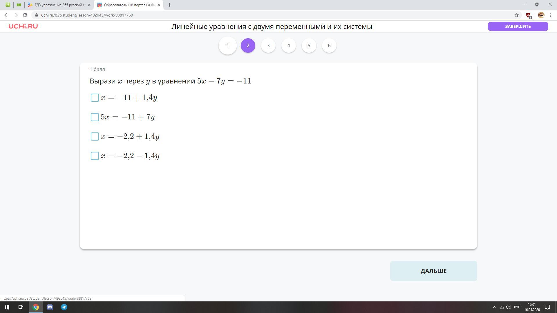 5x = - 11 + 7y