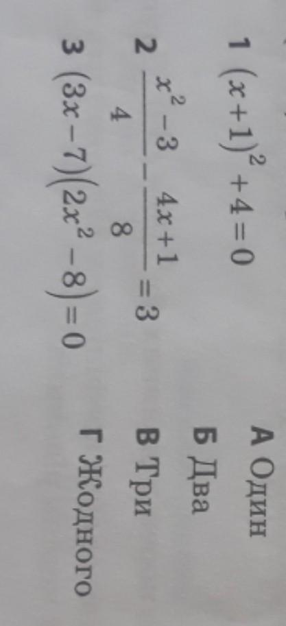 установіть відповідність між рівняннями ( 1 - 3) і кількістю ( А - Г ) коренів​
