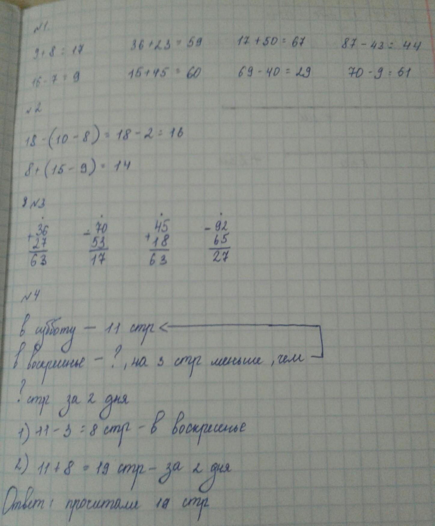 3. 36+27 = 63 70-53 = 17 45+18= 63 92-65= 27